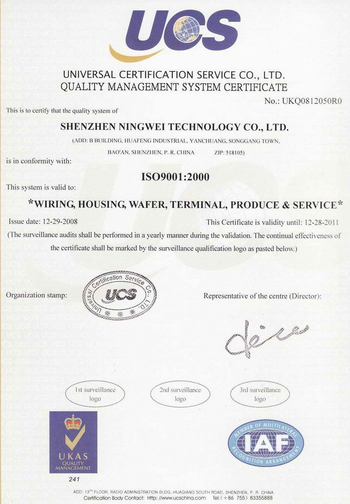 恒荣钟表公司2008年荣获通过ISO9001:2000质量管理体系认证、
