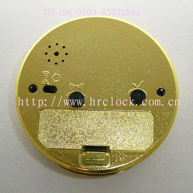 直径78mm闹钟头,金色波浪纹外框 产品尺寸:Φ78*高36.5mm 包装规格:2*50PCS/箱;重量:8kg 外箱尺寸 :47*44*21CM 工艺:电镀颜色 颜色:金/银色可做 产品均属一秒级机芯,寿命6至8年以上,全部通过ROHS认证. 闹钟头晶振频率:32.768KHz平均瞬时日差:±1秒/天 响闹精度:±3分钟 响闹声音:BB响 闹钟头电池/寿命:AA/1年 电池寿命:6个月