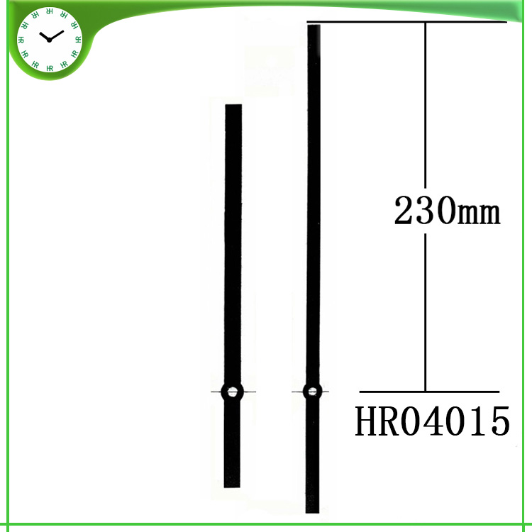 恒荣钟表在这些年来不断的创新和开发钟表钟针现拥有2000多不同款式形状钟针模具,款式新怡得到钟表行业和工艺装饰品行业以及艺术品行业等等的应用和好评,恒荣钟针适用于各品牌钟机芯使用如精工机芯、太阳机芯、恒荣钟机芯、伟盈机芯等等,钟针的孔形有圆孔和方孔多种。恒荣钟表钟针的材质有铜料、铝料和塑胶3种材质,金属钟针厚度分别有0.4至1.0mm,塑胶钟针的厚度在1.5至2.0mm,金属钟针普遍使用的都是0.4mm的厚度,0.4mm的厚度在一般的钟表完全可以满足要求了,长针不建议超过0.5mm的厚料因为这样会对机芯有一定的影响寿命和走时的准确度。恒荣钟表生产的钟针颜色非常多,常用的颜色有黑色、白色、红色、银色、金色,如果亲们对颜色要求严格时请在订购下单时提供你的颜色色号或色板,这样我们可以高效地为亲们服务避免钟针颜色上的色差。