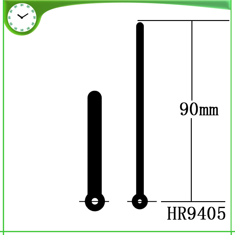 恒荣钟表在这些年来不断的研发和创新中公司现拥有2000多不同款式形状钟针模具,款式新怡得到钟表行业、工艺装饰品行业和艺术品行业等等的应用和好评,恒荣钟针适用于各品牌钟机芯使用如精工机芯、太阳机芯、恒荣钟机芯、伟盈机芯等等,钟针的孔形有圆孔和方孔多种。恒荣钟表钟针的材质有铜料、铝料和塑胶3种材质,金属钟针厚度分别有0.4至1.0mm,塑胶钟针的厚度在1.5至2.0mm,金属钟针普遍使用的都是0.4mm的厚度,0.4mm的厚度在一般的钟表完全可以满足要求了,长针不建议超过0.5mm的厚料因为这样会对机芯有一定的影响寿命和走时的准确度。 恒荣钟针长度计量方法是从钟孔的中心点量起,而不是整一支钟针的长度,因为这样的量法是根据钟盘的大小半径快速知道这钟要用多长的钟针。 恒荣钟表生产的钟针颜色非常多,常用的颜色有黑色、白色、红色、银色、金色,如果亲们对颜色要求严格时请在订购下单时提供你的颜色色号或色板,这样我们可以高效地为亲们服务避免钟针颜色上的色差。