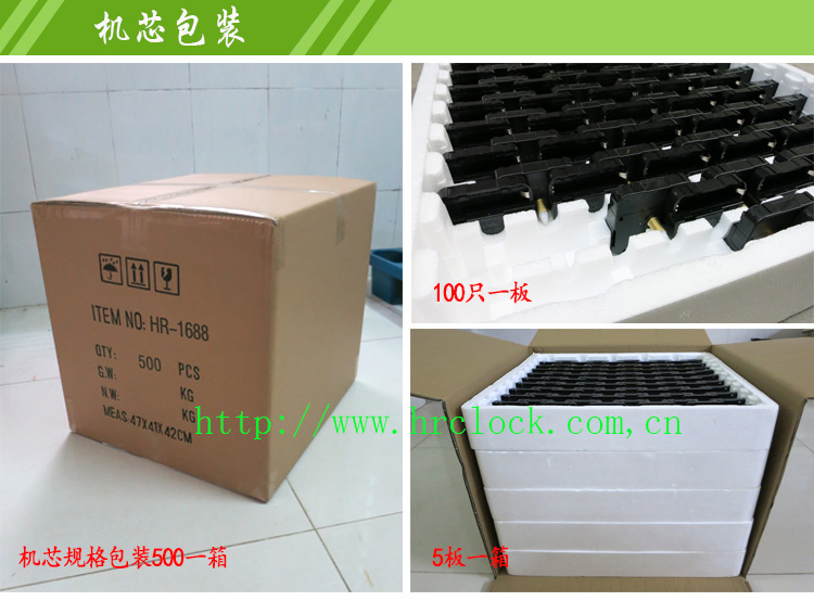 塑挂钩石英机芯轴长包装及数量: 机芯尺寸:56*(56+14)*16.2mm 装箱数量:轴长7至17MM=5*100PCS/箱;重13.5kg